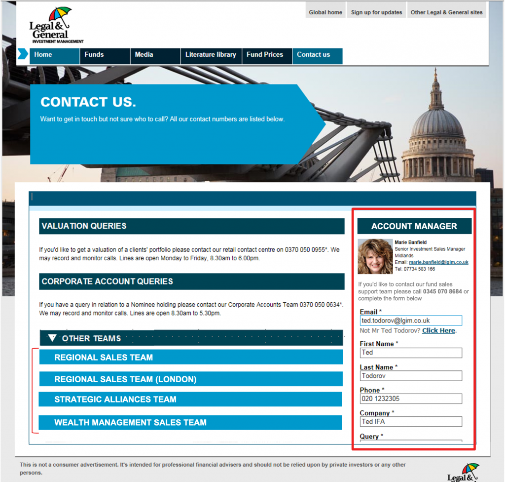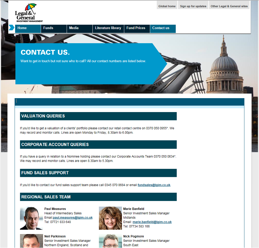 It can also be confusing for visitors as they are presented with quite a few options and all of the Sales Managers contact details. How do they know which one to call?